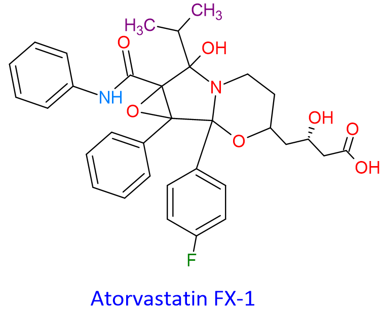 | Synonyms | Atorvastatin Cyclic 7-Hydroxy Impurity;Atorvastatin Epoxy Pyrrolooxazin 7-Hydroxy Analog (USP); Atorvastatin Degradation Product – ATV-FX1; Atorvastatin FP Impurity;1b-(4-Fluorophenyl)hexahydro-β,7-dihydroxy-7-(1-methylethyl)-1a-phenyl-7a-[(phenylamino)carbonyl]-3H-oxireno[3,4]pyrrolo[2,1-b][1,3]oxazine-3-butanoic Acid |