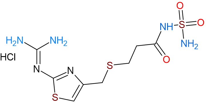 Synonyms3-[[[2-[(Aminoiminomethyl)amino]-4-thiazolyl]methyl]thio]-N-(aminosulfonyl)propanamide Hydrochloride; USP Famotidine Related Compound C