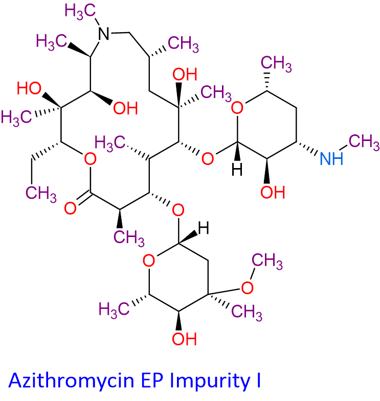 | Synonyms | N’-Desmethyl Azithromycin;(2R,3S,4R,5R,8R,10R,11R,12S,13S,14R)-13-[(2,6-dideoxy-3-C-methyl-3-O-methyl-α-L-ribo-hexopyranosyl)oxy]-2-ethyl-3,4,10-trihydroxy-3,5,6,8,10,12,14-heptamethyl-11-[[3,4,6-trideoxy-3-(methylamino)-β-D-xylo-hexopyranosyl]oxy]-1-oxa-6-azacyclopentadecan-15-one; CP-64434; Azithromycin EP Impurity I |
