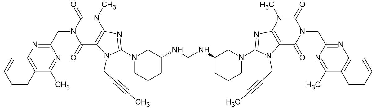 Synonyms7-(but-2-yn-1-yl)-8-((R)-3-(((((S)-1-(7-(but-2-yn-1-yl)-3-methyl-1-((4-methylquinazolin-2-yl)methyl)-2,6-dioxo-2,3,6,7-tetrahydro-1H-purin-8-yl)piperidin-3-yl)amino)methyl)amino)piperidin-1-yl)-3-methyl-1-((4-methylquinazolin-2-yl)methyl)-3,7-dihydro-1H-purine-2,6-dione