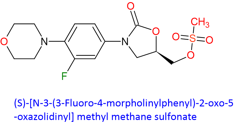 Linezolid (S)-[N-3-(3-Fluoro-4-morpholinylphenyl)-2-oxo-5-oxazolidinyl] methyl methane sulfonate